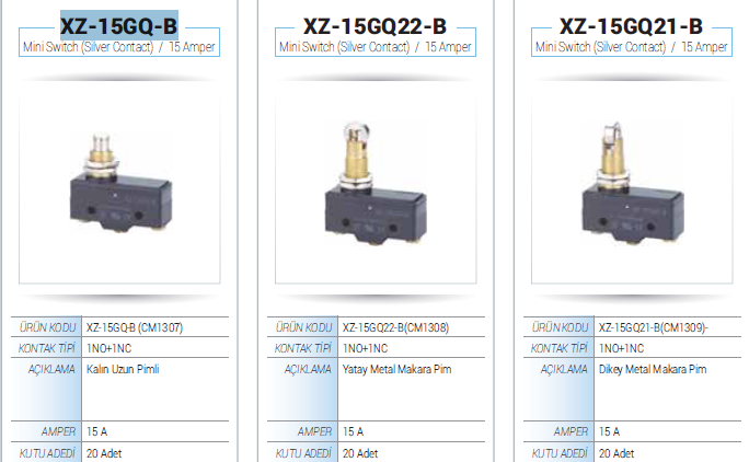 15A Dikey Metal Makara Pim Mini Switch XZ-15GQ21-B