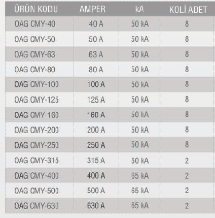 100A ,125A ,160 A ,200 A ,250 A ,315 A ,400 A ,40A ,50A ,63A ,80A |