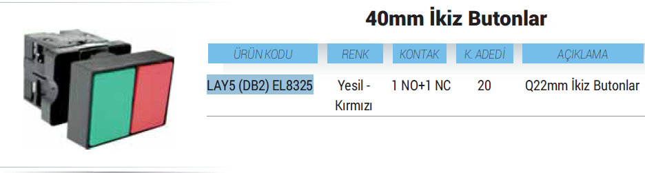 40mm İkiz Butonlar 250VAC/3A (IP44)