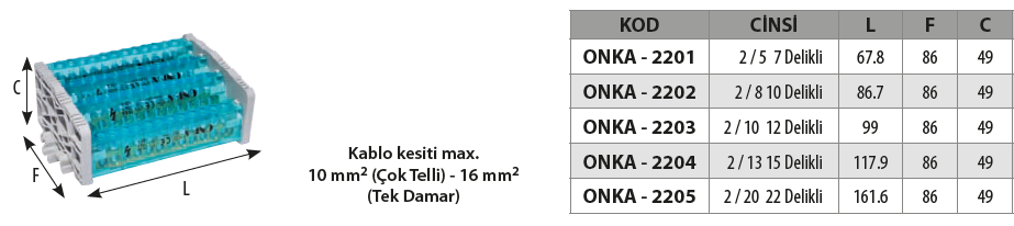 Tek Damarlı Kablo Kesiti max. 16 mm2