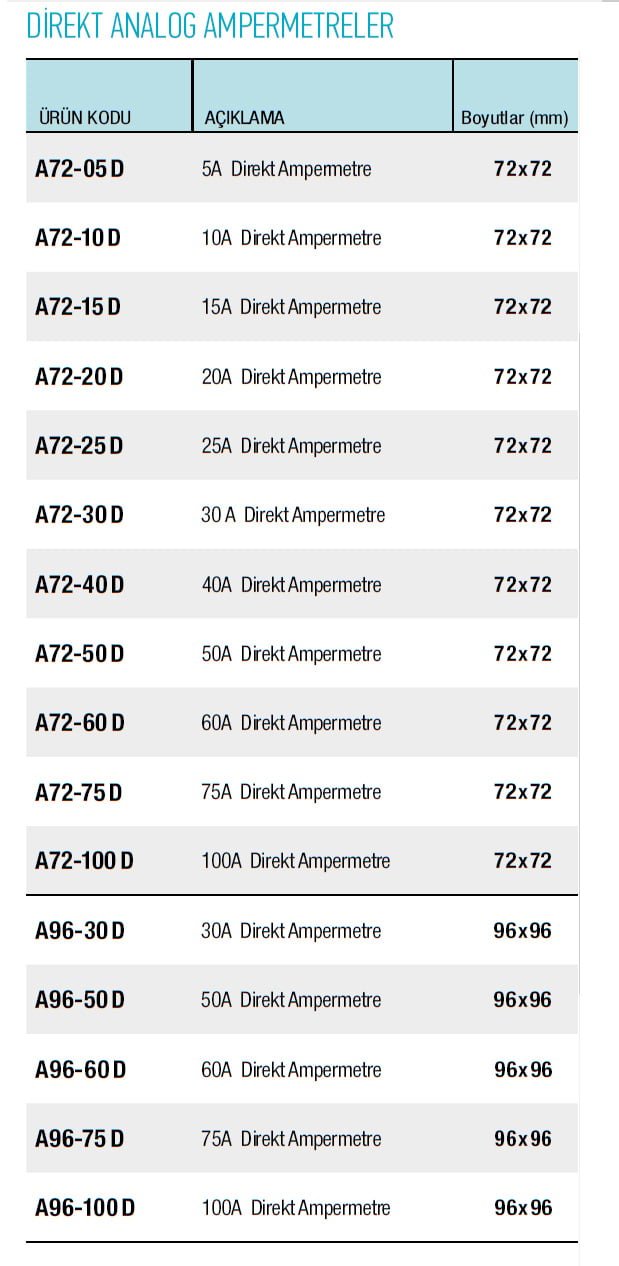 30 A Direkt Ampermetre ,40A Direkt Ampermetre |