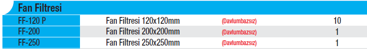 Davlumbazsız Fan Filtresi