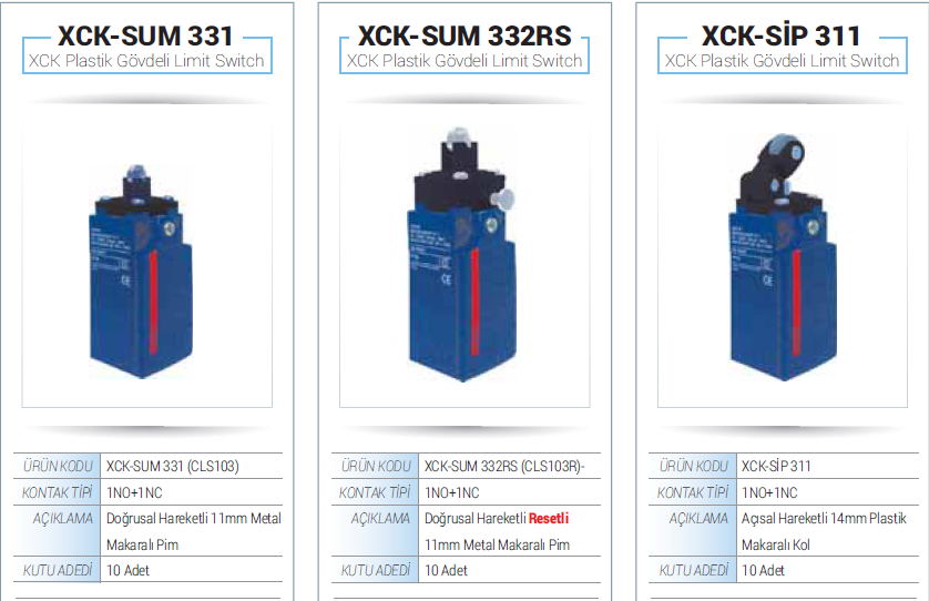 Doğrusal Hareketli Resetli 11mm Plastik Makaralı Pim Switch XCK-SUM 332RS