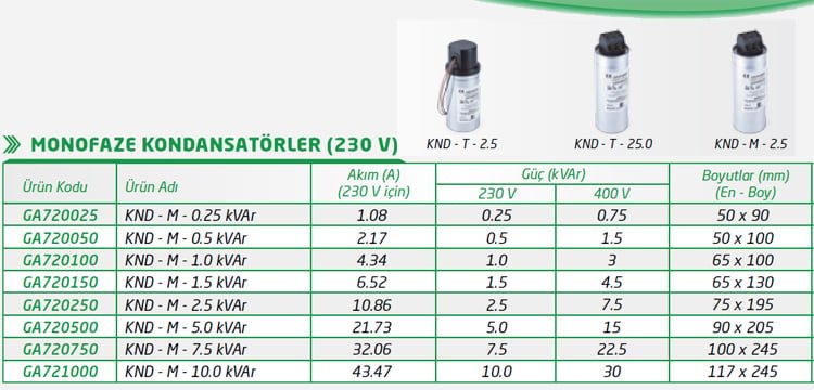 Grup Arge 1.0 kVAr 230V Monofaze Kondansatör 230V