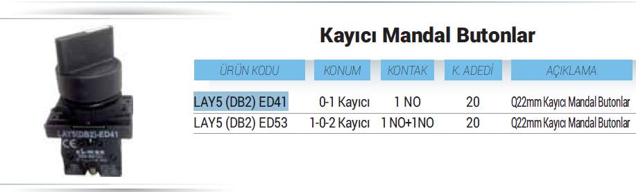 Kayıcı Mandal Butonlar 250VAC/3A (IP44)