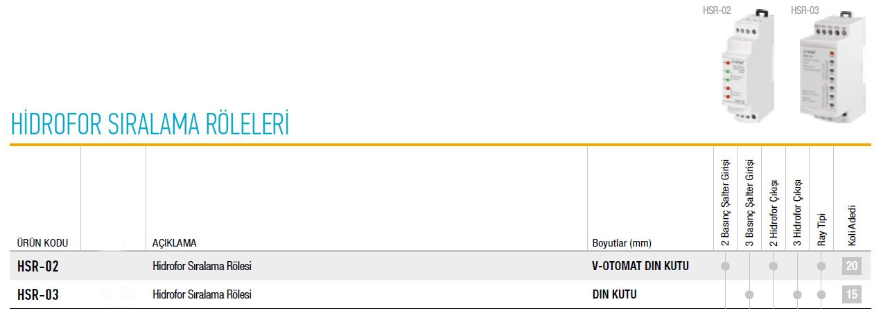 TENSE HSR-03 Hidrofor Sıralama Rölesi (3 Giriş – 3 Çıkışlı) Ray Tipi DIN KUTU