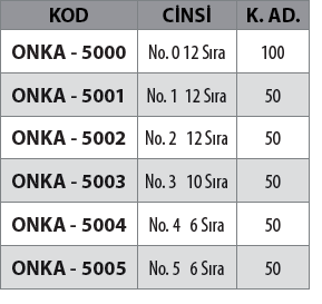 No.0 12 Sıra ,No.1 12 Sıra ,No.2 12 Sıra ,No.3 10 Sıra ,No.4 6 Sıra ,No.5 6 Sıra |